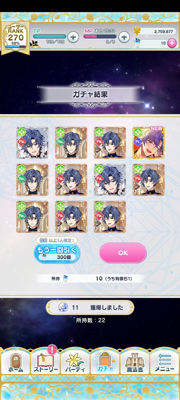 그리고 돌릴까 말까 돌릴까 말까 고민하다가 딱 10연만 돌림… 근데 지금보니까 딱 10연만 돌린 게 아니네요? 1일에 라투디 보고 생각보다 귀여워서 돌린듯하나 잘 기억나지 않습니다. 누구누구는 20생일은 천장 쳤는데 누구누구는 딱히 바라지 않았는데 20생일로 나오는구나 고맙다