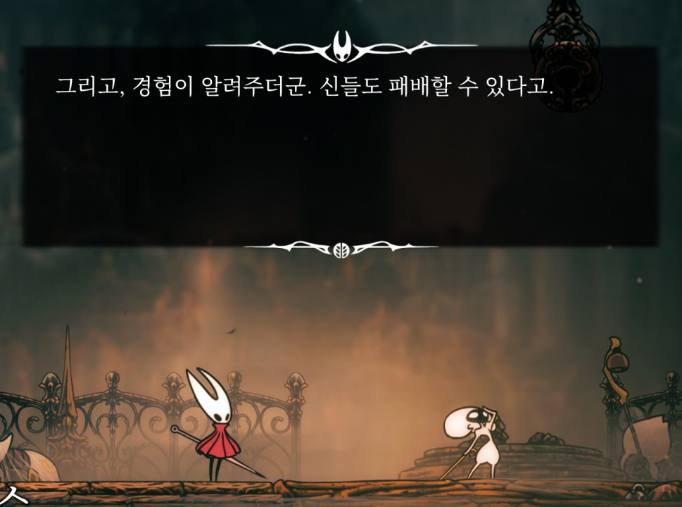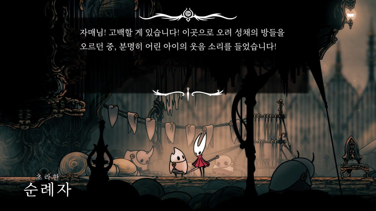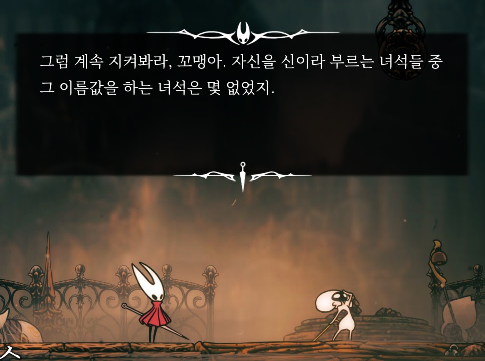 바늘 2강하고 돌아와서 왕의 궁정에 있던 선율도 얻었다. 스샷은 길막 쫄 릴레이 끝난 뒤 대화인데 이 부분이 너무 웃겼음… 역시 캐릭터가 말을 한다는 건 웃기구나…